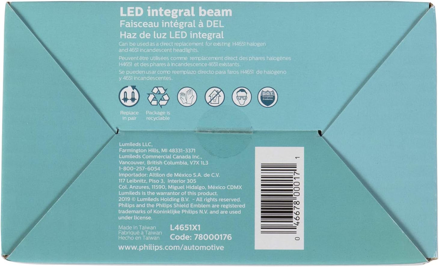 See farther down the street with Philips LED integral beam. A common LED substitute improve for automobiles with sealed beam headlamp. The lamp is extra sturdy than standard sealed beam, with an increasded lifetime. It produces as much as 6000K energy cool white gentle, no glare, and is DOT compliant.