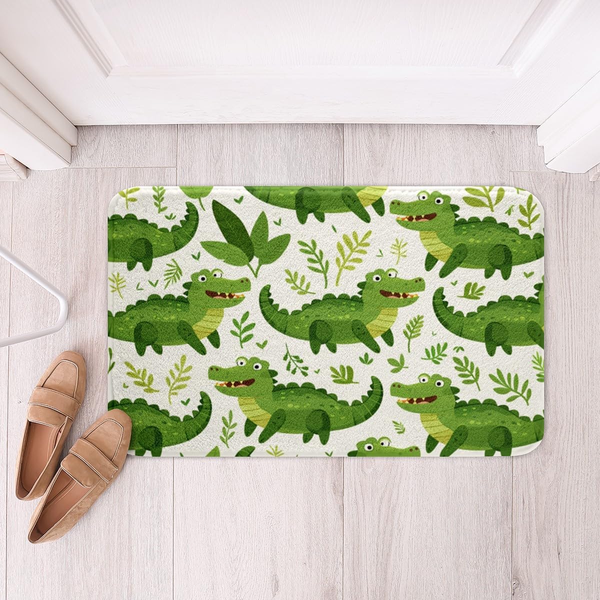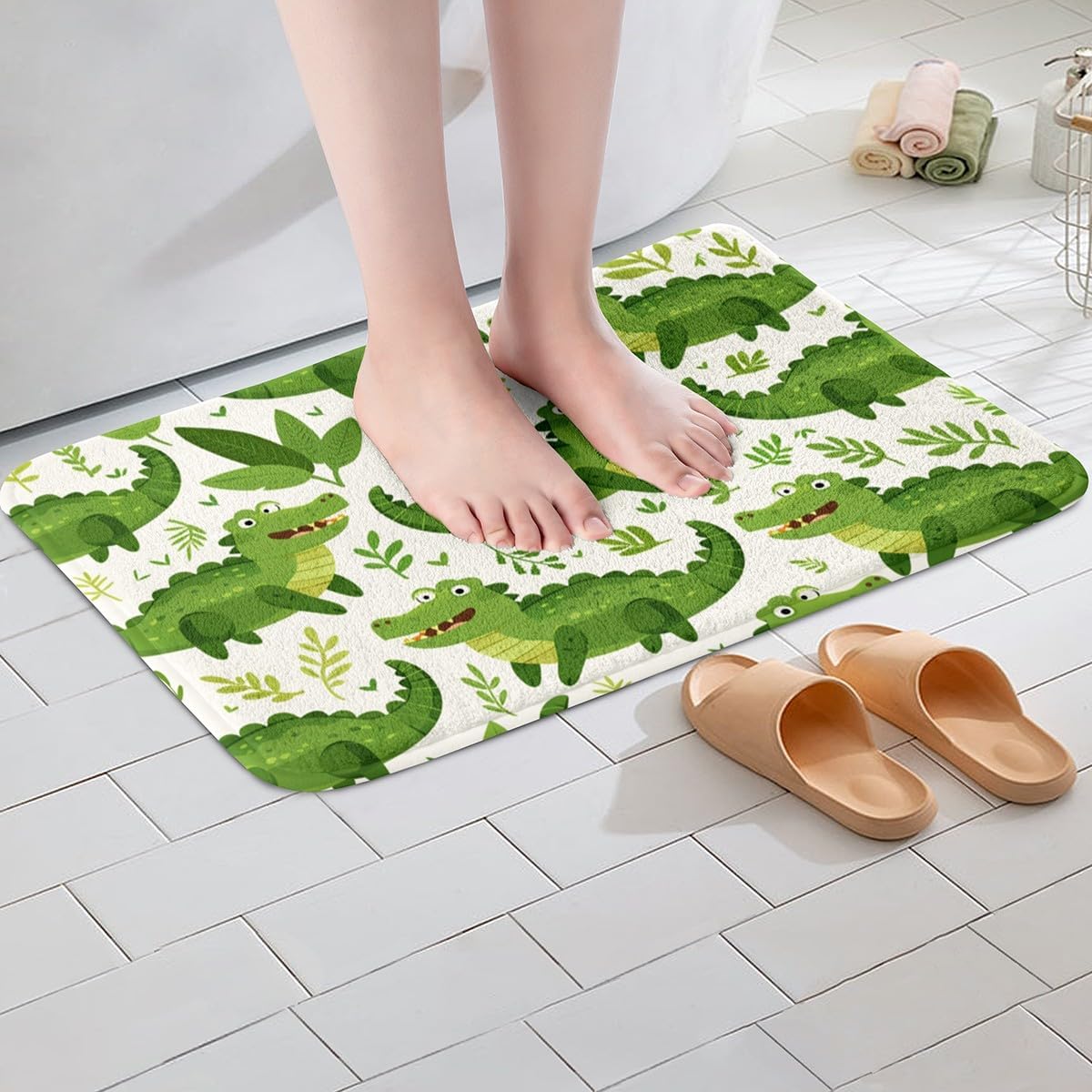 Cartoon Crocodile Bath Mats for Bathroom Lovely Wild Animal Bath Rugs for Shower Tub Decor Soft Shaggy Absorbent Green Leaves Bathroom Accessories 16″x24″