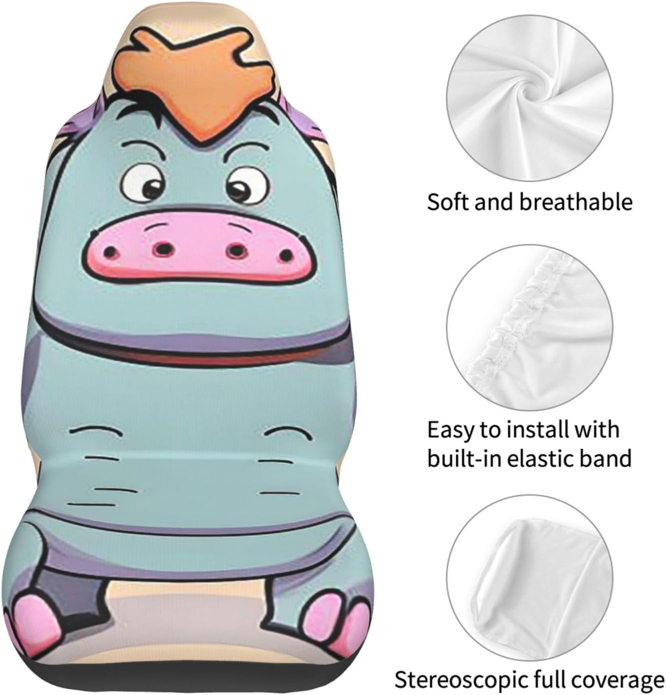 Universal And Convenient: Cartoon Hippos Print Seat Covers For Cars Using A Universal Design, It Is Suitable For The Front Seats Of Most Cars, Trucks, Suvs, Vans, Rvs, And Tractors. It Is Easy To Install And Can Be Completed In Just A Few Minutes