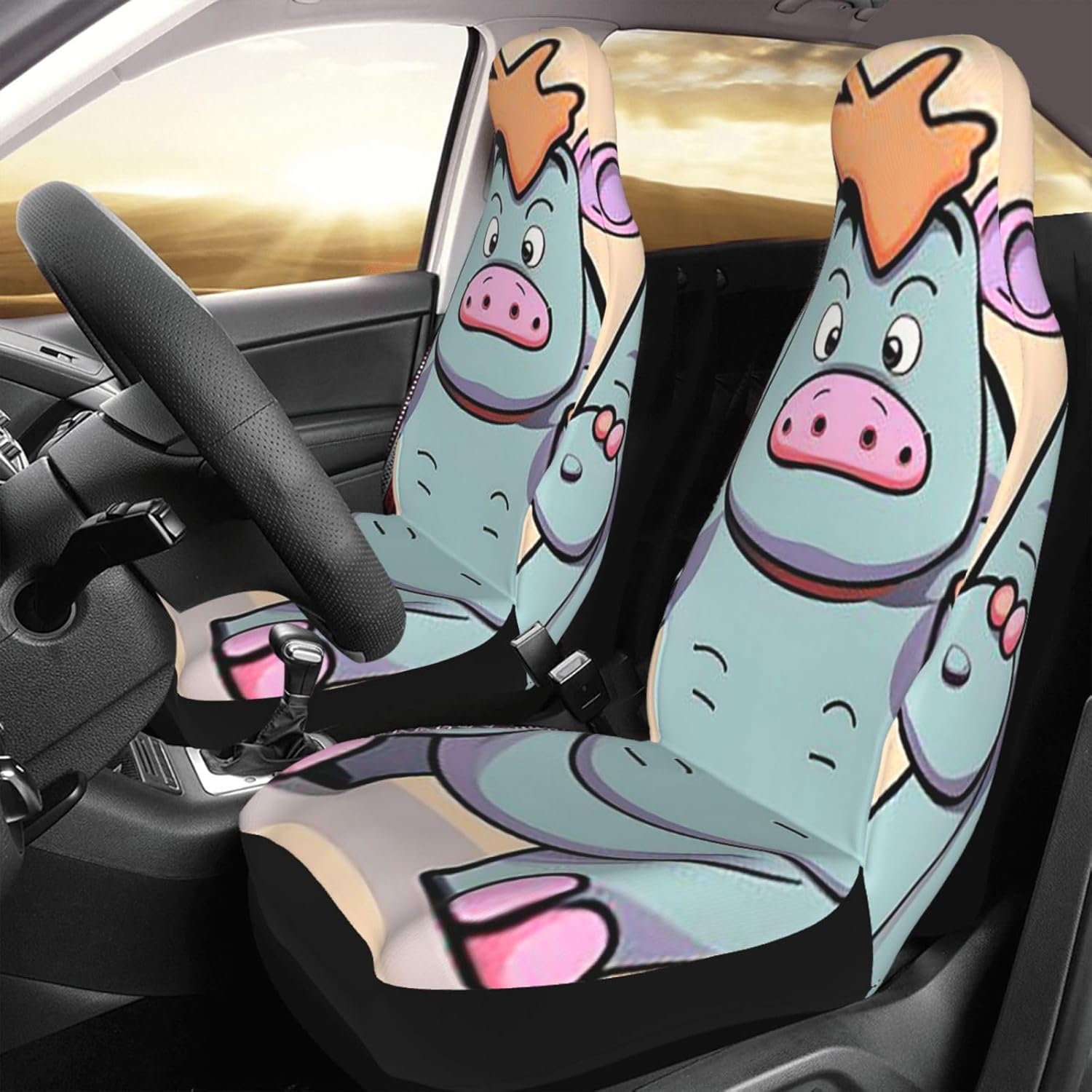 Cartoon Hippos Car Seat Covers Set of 2 Waterproof Breathable Front Seat Protector Universal Fit for Most Cars Suvs Trucks Easy to Install Seat Cushion Cover Car Accessories