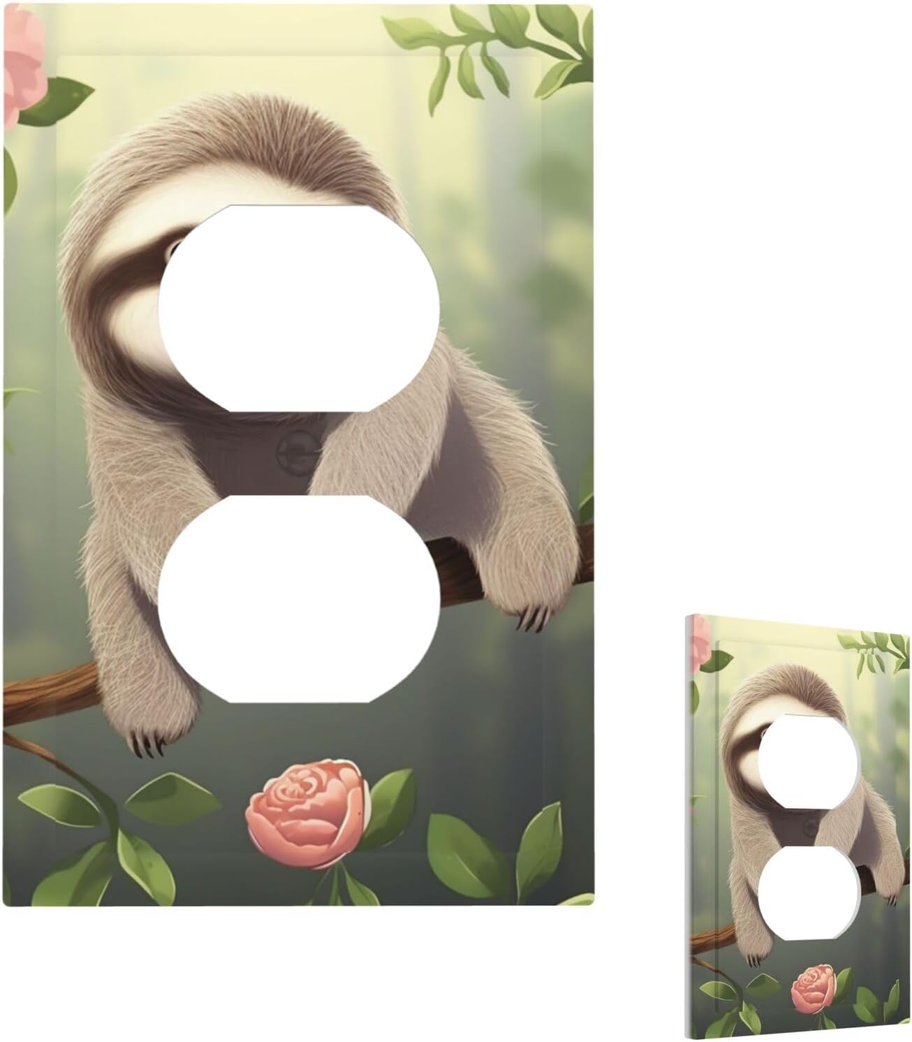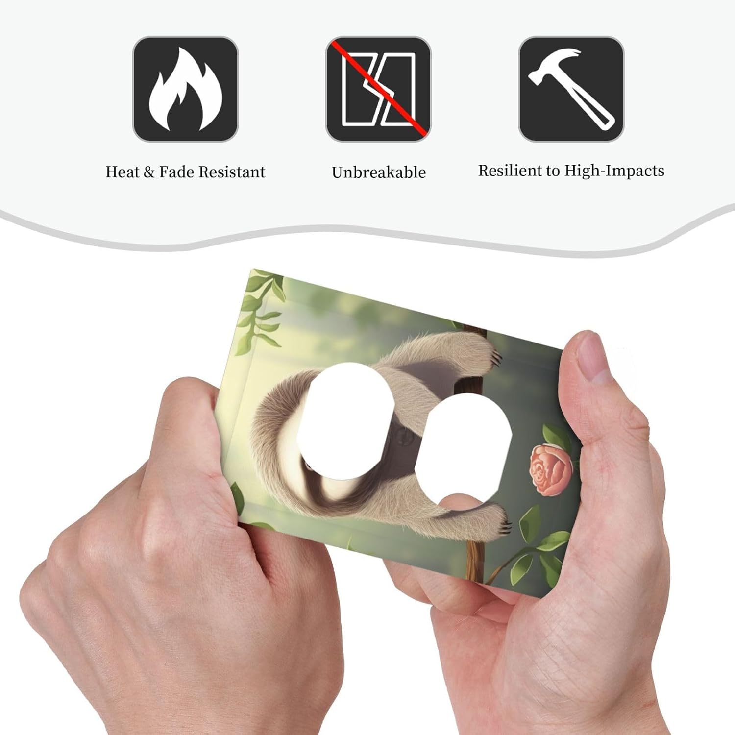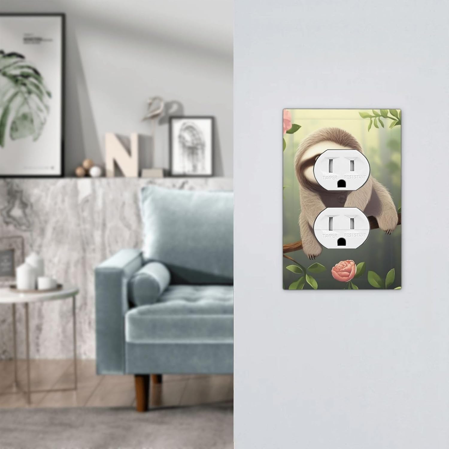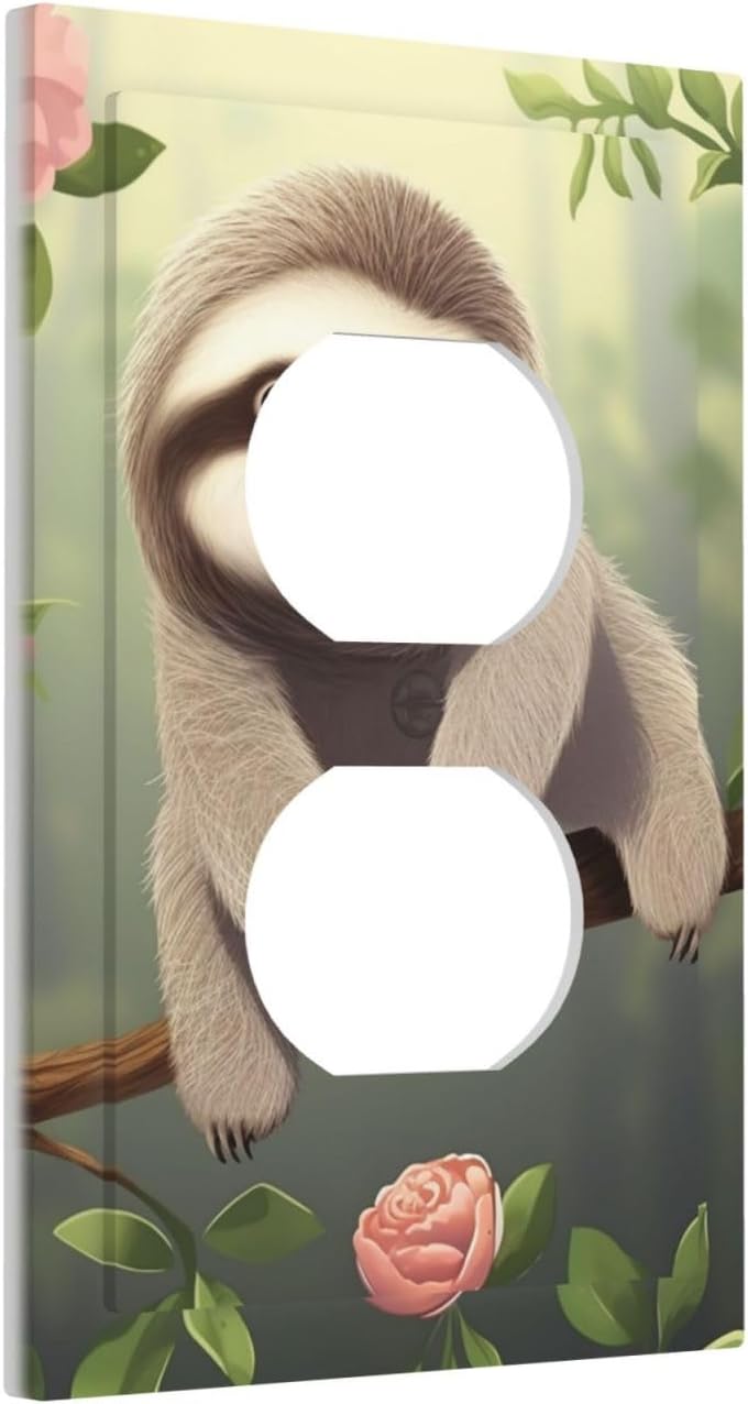 Cute baby sloth Outlet Covers 1-Gang Standard Size Wall Plates 5 X 3 Inch Decorative Light Switch Cover Unbreakable Polycarbonate Faceplates Covers, Color-matched Screws Included