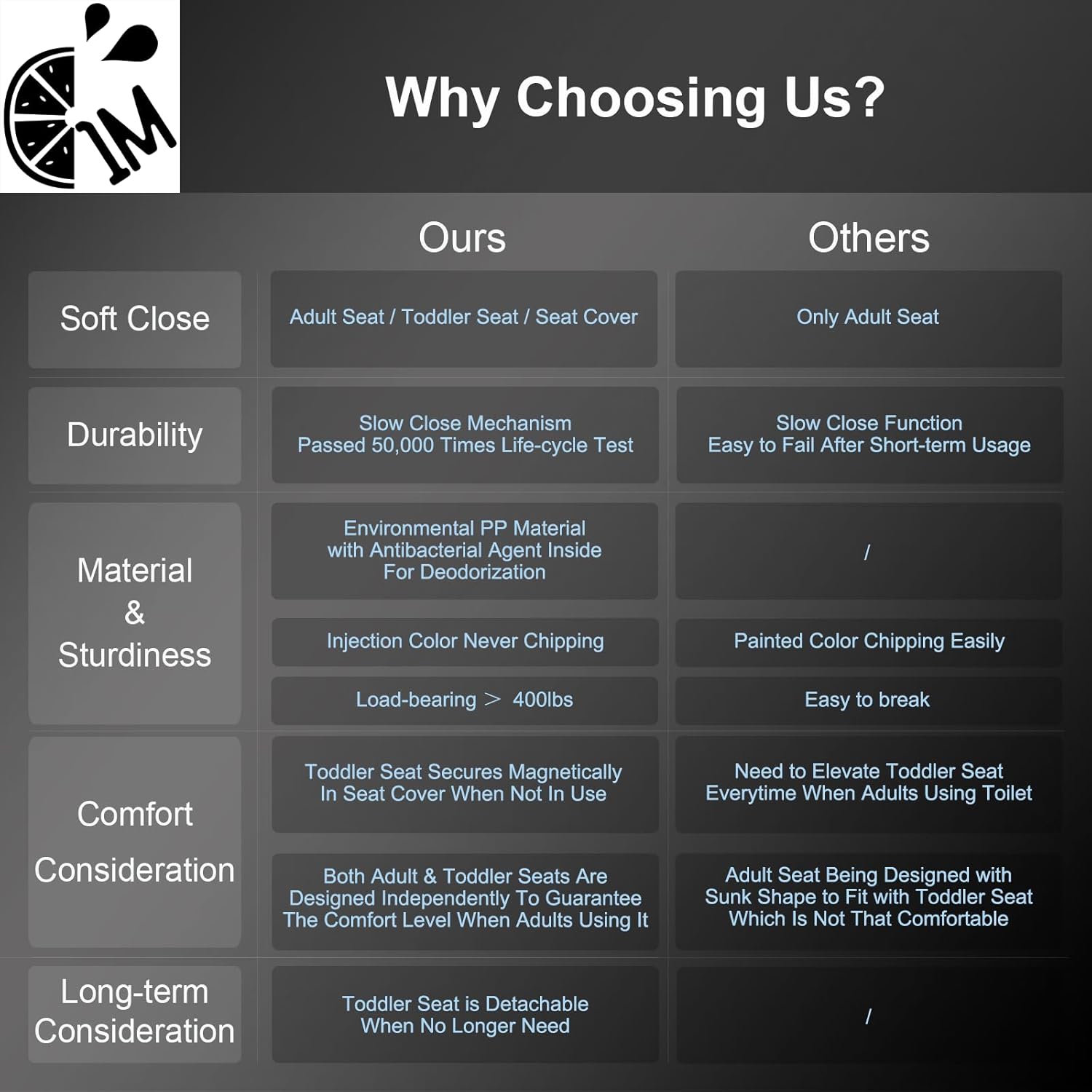 NO MORE SLAMMING – Each the Grownup and Toddler Seats, in addition to the Seat Cowl contained with our distinctive Silence-Closing Know-how, no fear about pinched fingers or scaring the children.
