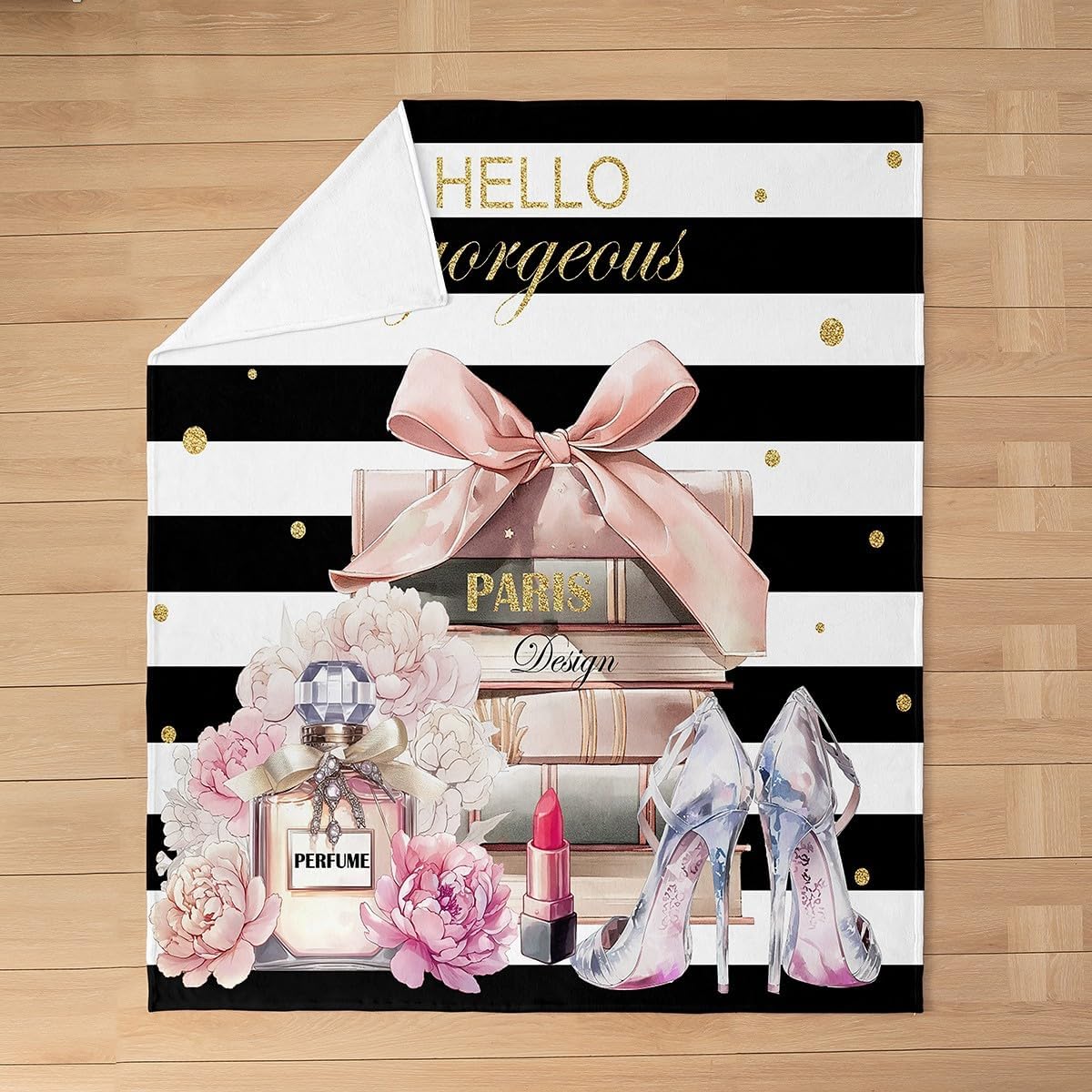 jejeloiu Pink Fashion Flannel Fleece Blanket Throw 50″x60″ Kids Black White Striped Plush Throw Blanket for Boys Girls Teens Floral,All Season for Bed Sofa Couch Breathable Perfume High Heels Books