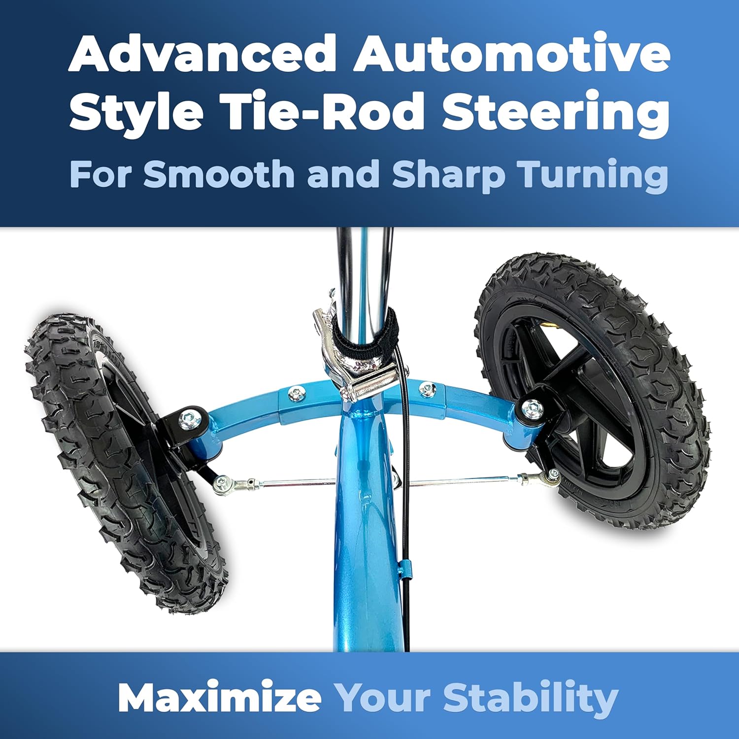 ALL TERRAIN FREEDOM: The KneeRover QUAD is the unique All Terrain knee scooter with 4 air stuffed tires offering most mobility freedom to navigate your property, work, and any terrain with ease – together with grass, gravel, dust and gaps in sidewalks.