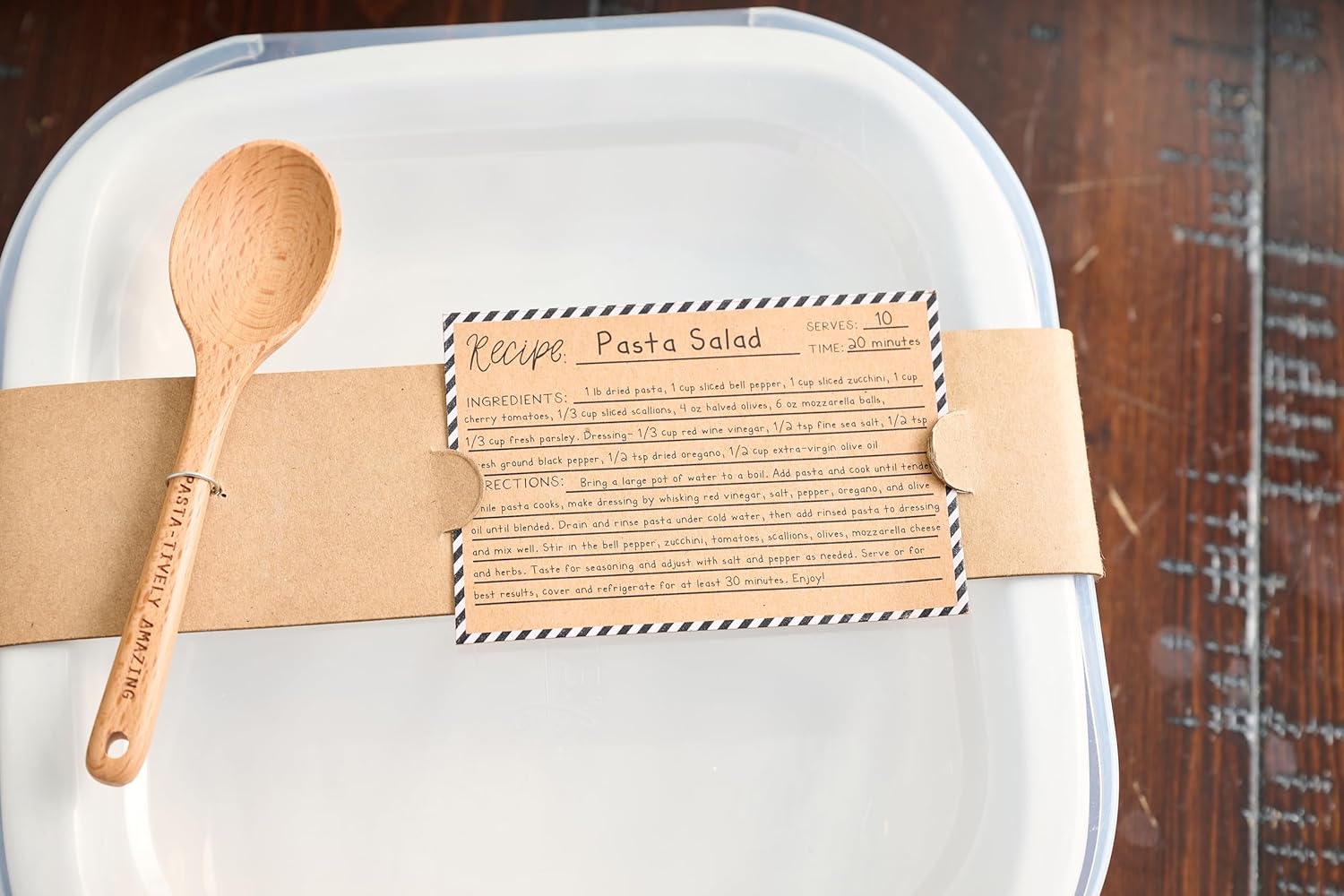 The Ceramic Lidded Pasta Salad Set Is A Fashionable And Useful Addition To Any Kitchen, That includes A Fantastically Crafted Ceramic Dish Impressed By Deli Pasta Containers. This 3-Piece Set Contains A Sturdy Plastic Lid To Hold Your Pasta Contemporary And A Charming Wood Spoon For Simple Serving. Accompanied By A Kraft Pasta Salad Recipe Card, It Affords A Pleasant Method To Discover New Culinary Creations. The Ceramic Dish Is Each Dishwasher And Microwave Protected, Guaranteeing Comfort And Ease Of Use.