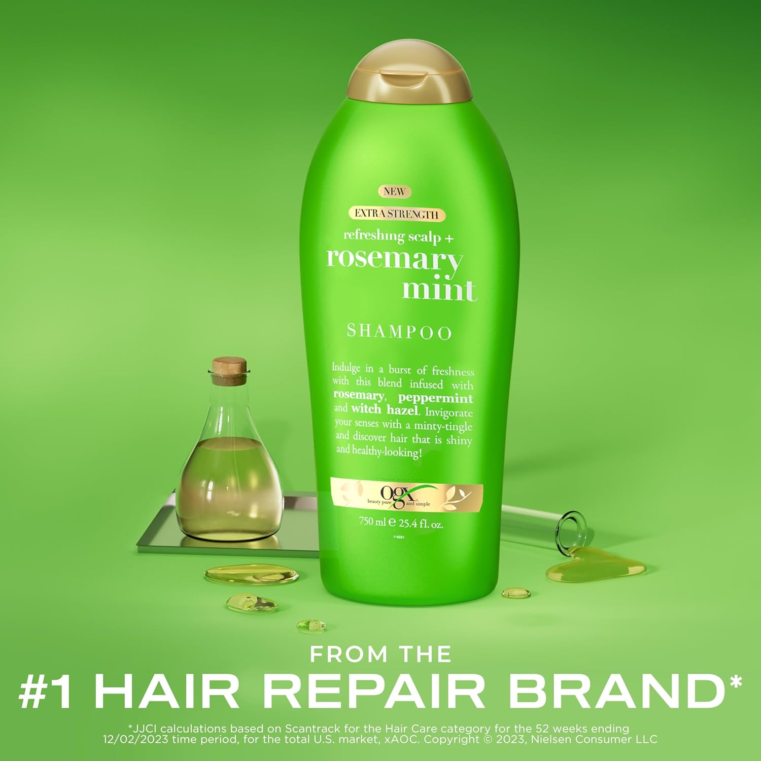 Visibly assist take away oil & residue out of your hair with OGX Further Power Refreshing Scalp + Rosemary Mint Shampoo. This hair wash from the #1 Hair Restore Model* helps clear buildup out of your oily hair & scalp to go away your hair wanting shiny & smooth. The shampoo infused with rosemary oil & peppermint extract helps refresh & make clear your hair whereas leaving it smelling refreshingly clear, plus witch hazel, a delicate astringent recognized to assist take away buildup with out stripping your hair whereas nourishing the scalp. To make use of, apply rosemary mint clarifying shampoo to moist hair, therapeutic massage right into a lather, rinse & observe with an OGX Shampoo to go away hair wanting shiny & feeling smooth. The additional power hair wash has been rigorously formulated to be with out sulfated surfactants & dyes. *JJCI calculations based mostly on Scantrack for Hair Care class for the 52 weeks ending 12/02/2023 time interval, for the overall U.S. advertising and marketing, xAOC. Copyright © 2023, Nielsen Shopper LLC