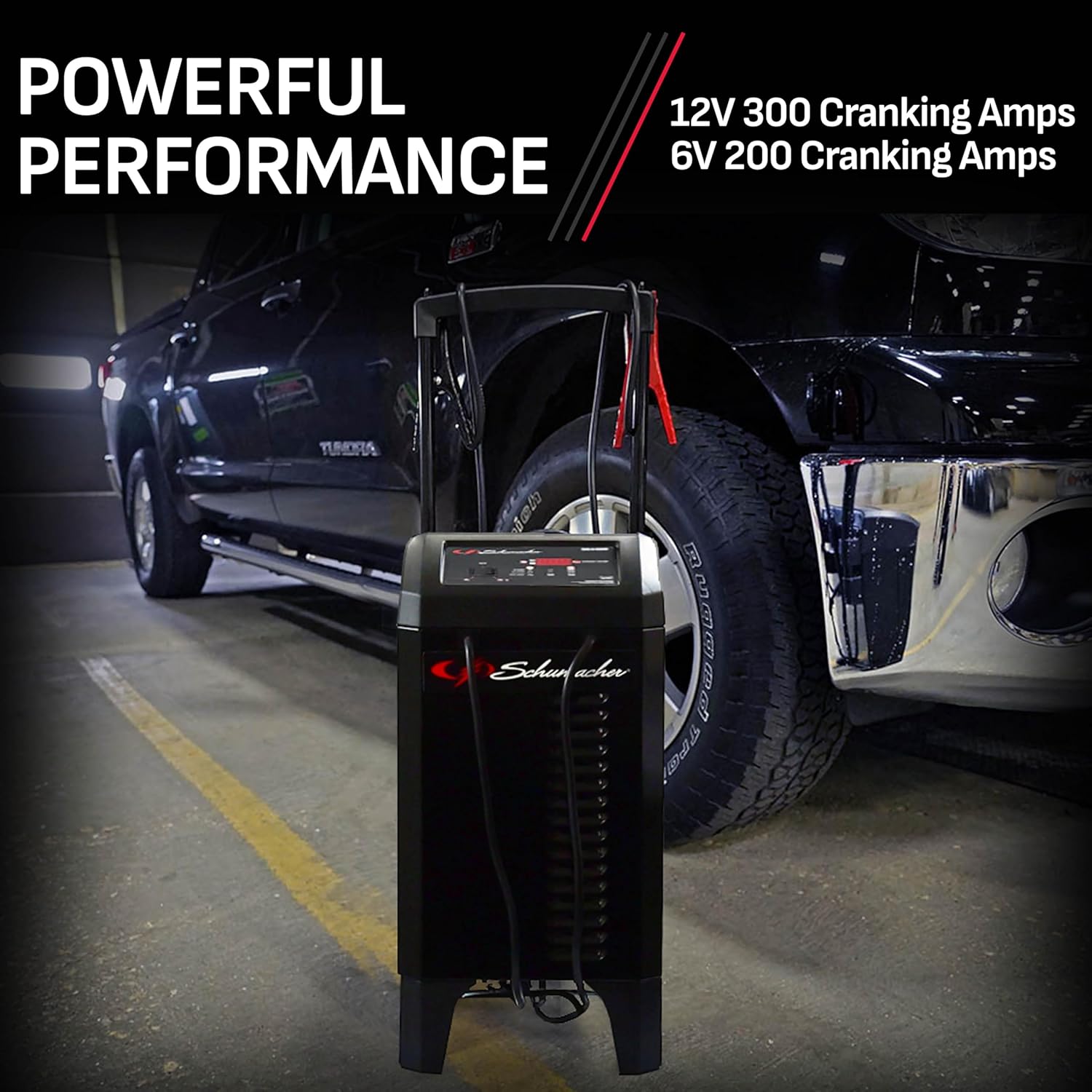 POWERFUL PERFORMANCE: The Schumacher SC1400 delivers a 300 cranking amps (12V) engine begin and a 200 cranking amps (6V) engine begin with 60A enhance and 6A<>2A cost/keep modes; sturdy sufficient to cost SUV, truck, and different massive batteries