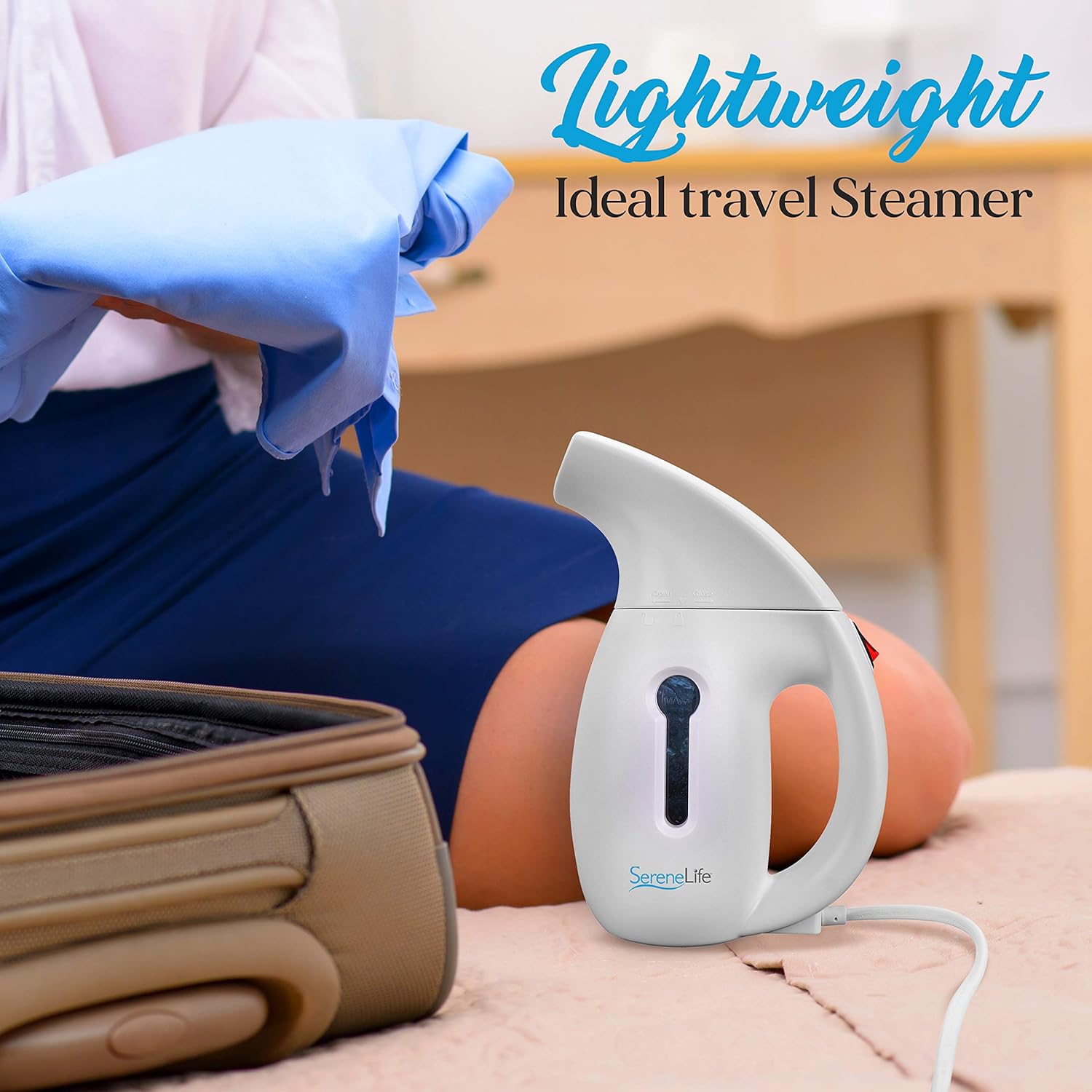 SereneLife Portable Handheld Fabric Steamer – 180ml Water Tank Capacity Compact Lightweight Travel Steamer Handheld Water Vapor Garment Steamer, Wrinkle Remover For Clothes Furniture Curtain – PSTMH17