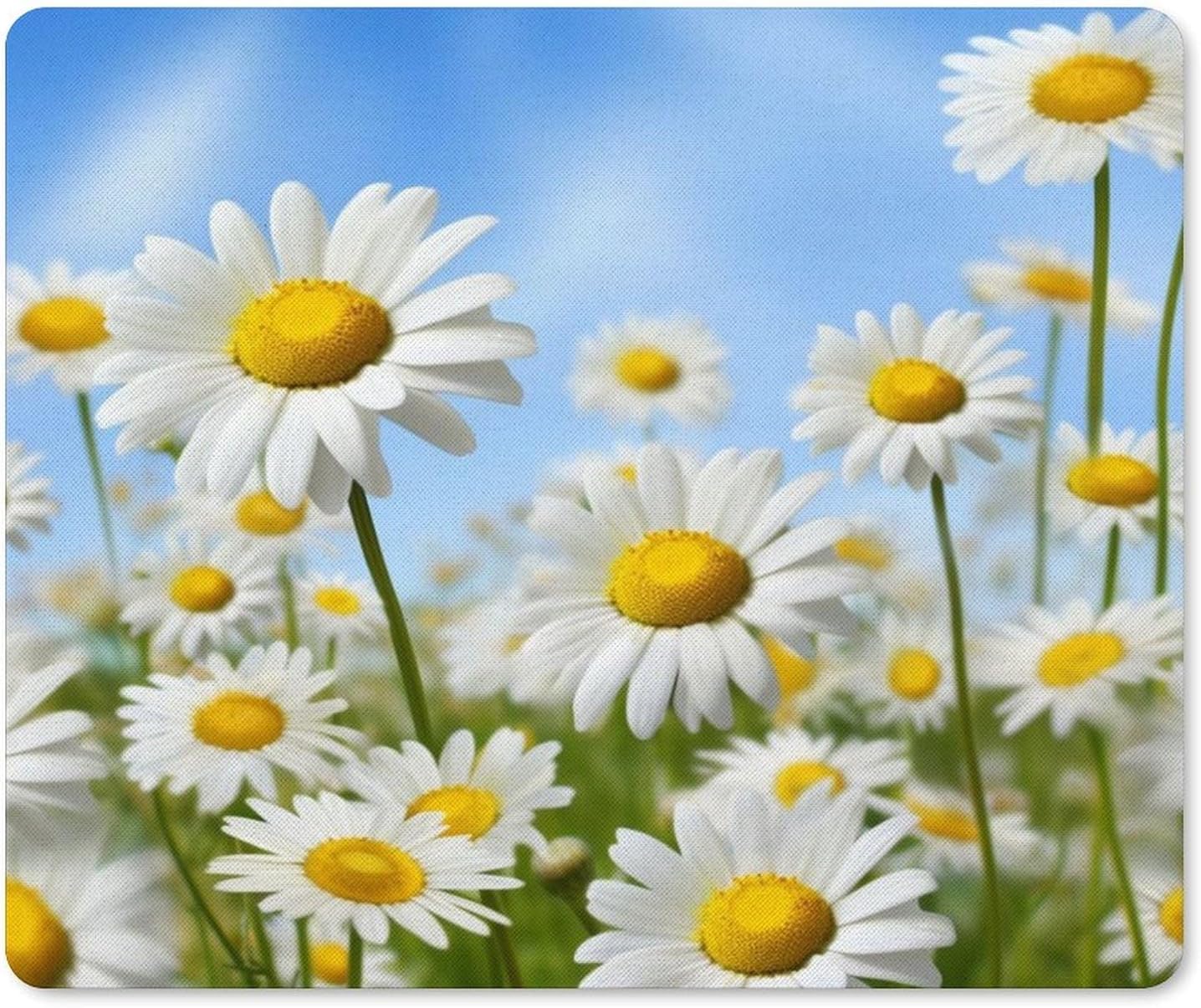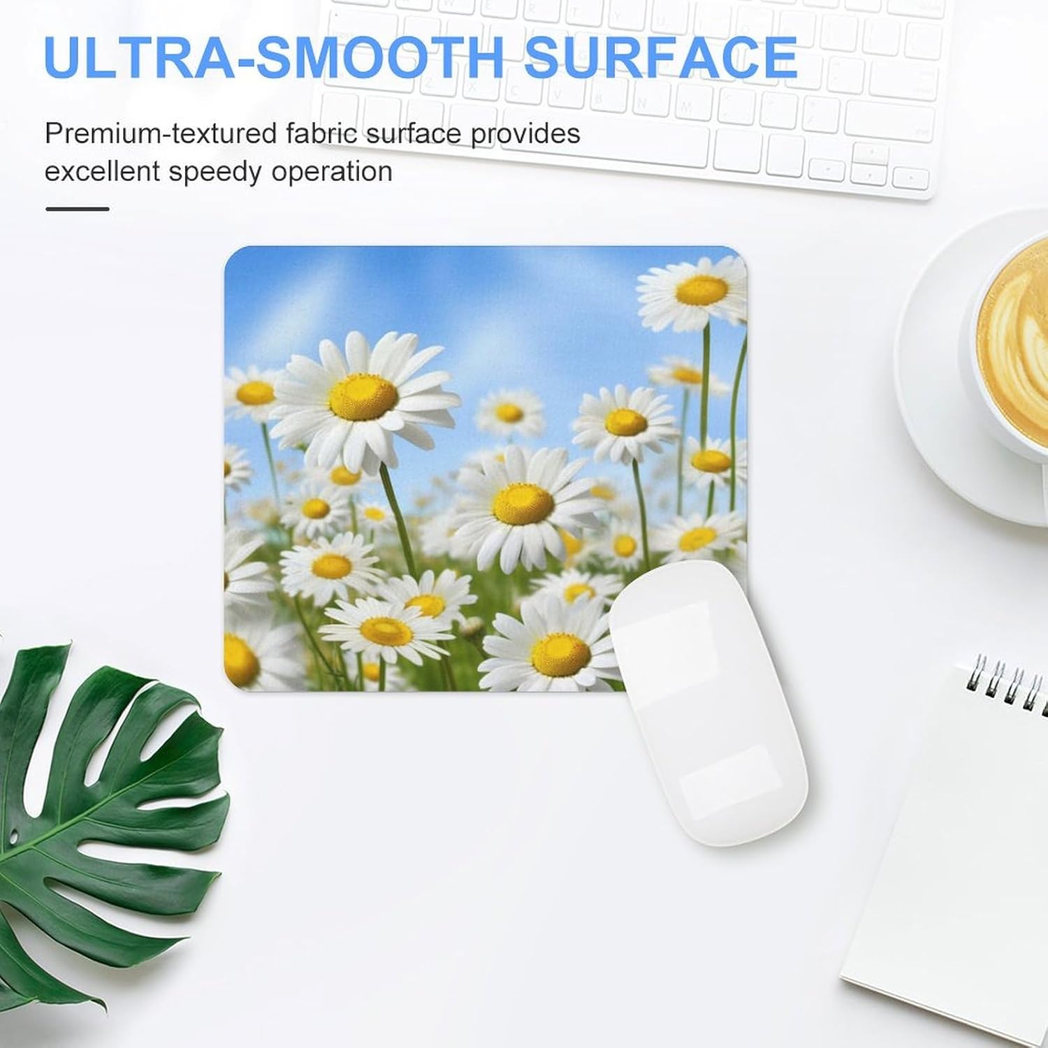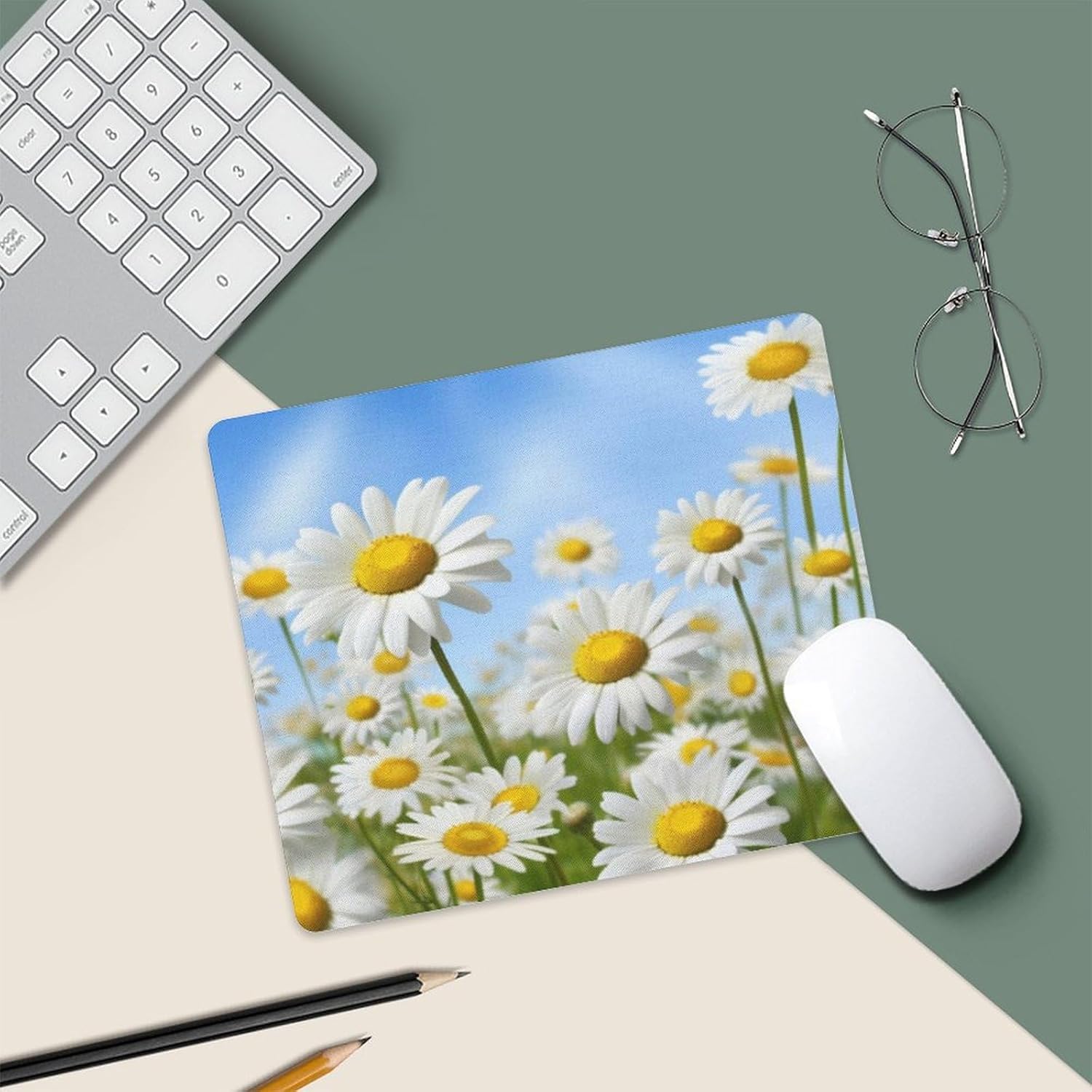 Spring Daisy Flowers Mouse Pad Square Gaming Mousepad Ultra Thin, Smooth Surface & Non-Slip Rubber Base Waterproof Comfortable Mouse Mat for Computers Laptop 18 * 22cm