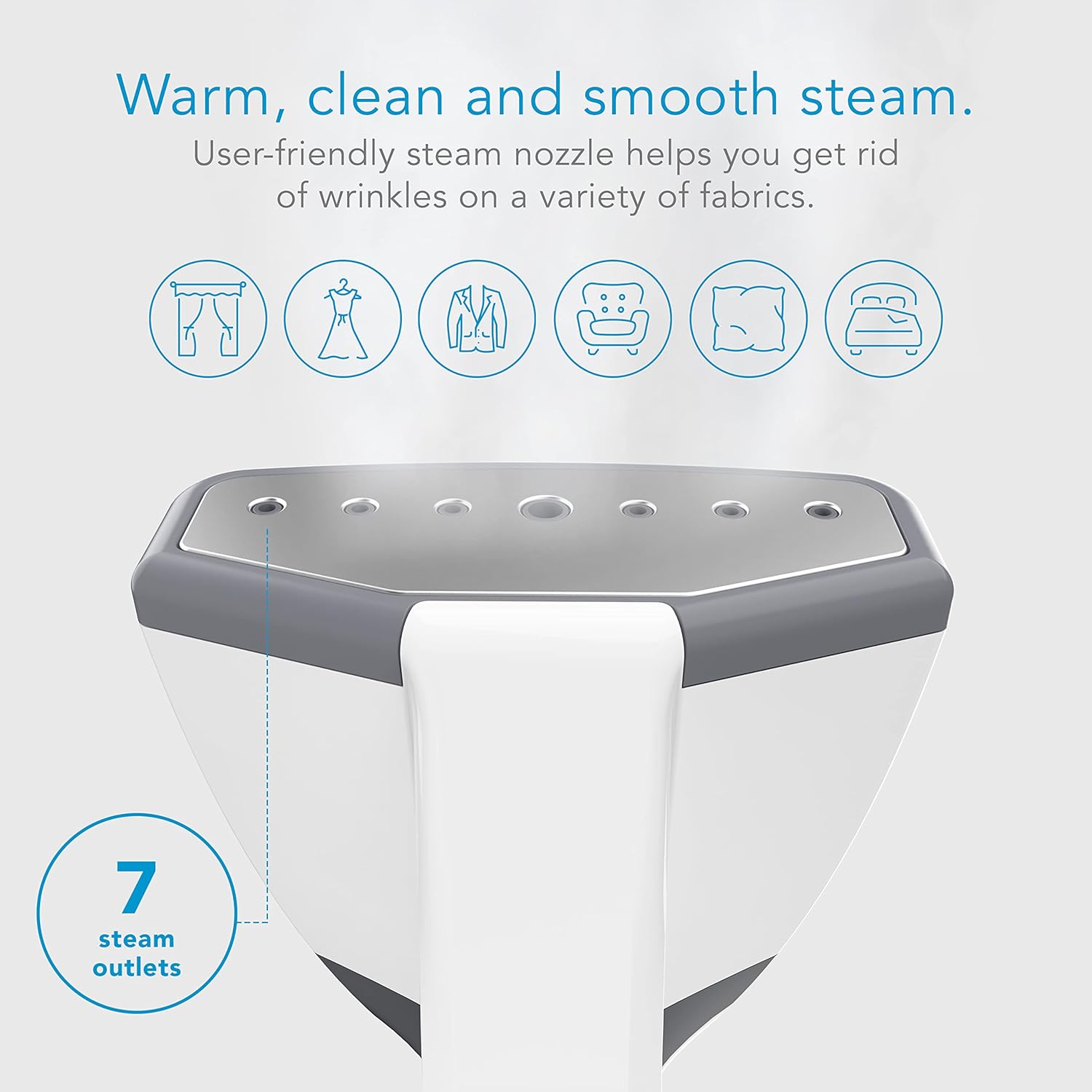 PACKED WITH POWER — With a watt usage of 1000, experience robust performance in a sleek, portable design. This compact steam device features 7 steam outlets to ensure a steady, strong flow of steam, perfect for all your garment care needs.