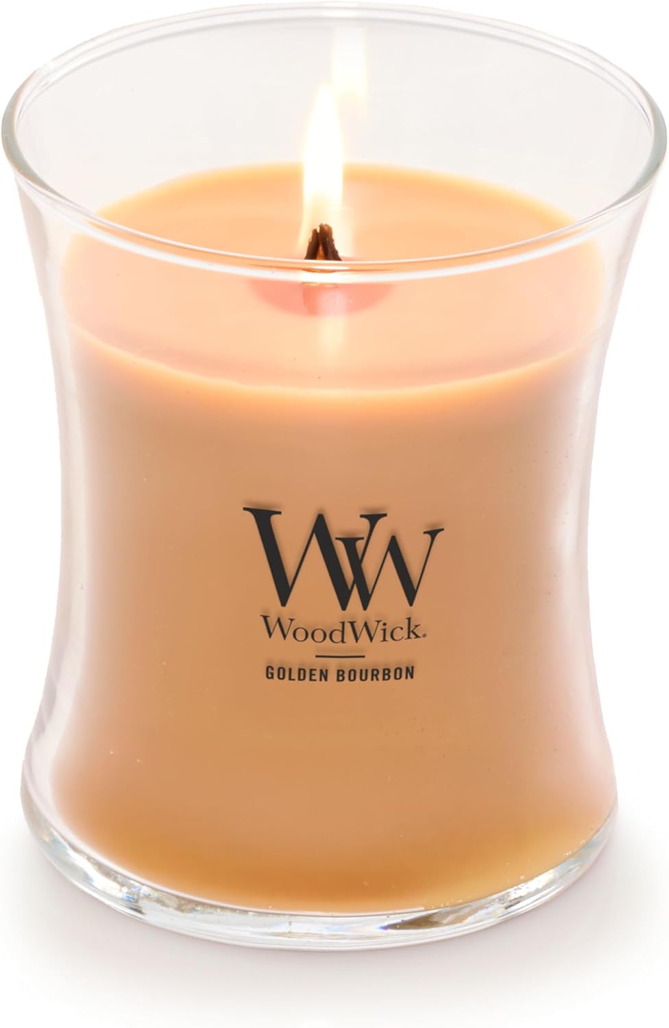 WoodWick Golden Bourbon Medium Hourglass Candle, Crackles as it Burns, Up to 65 hrs Burn time, Perfect for Gifting, 9.7 oz