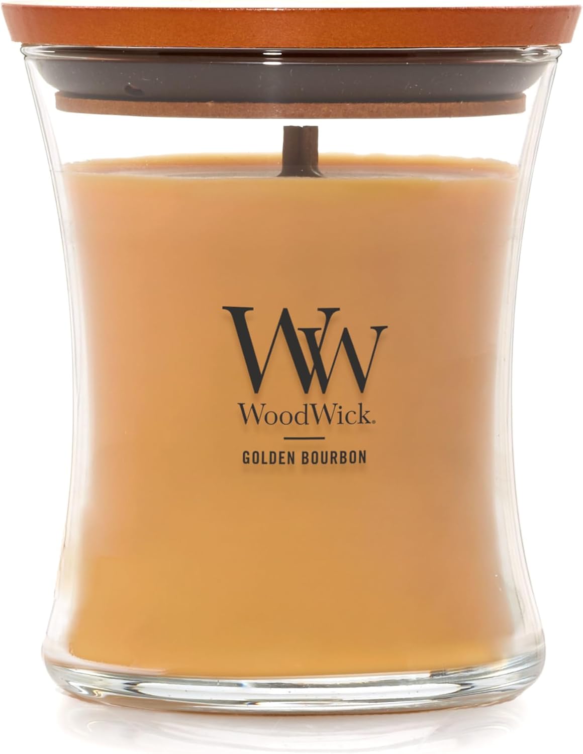 WoodWick Golden Bourbon Medium Hourglass Candle, Crackles as it Burns, Up to 65 hrs Burn time, Perfect for Gifting, 9.7 oz